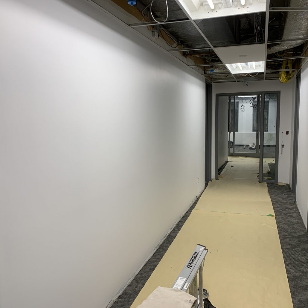 Description: Paint 7,000 sqft of renovating office area. Paint new walls with DRY ERASE wall coating, which is a special paint to allow use markets on the walls and easily erase the ink.